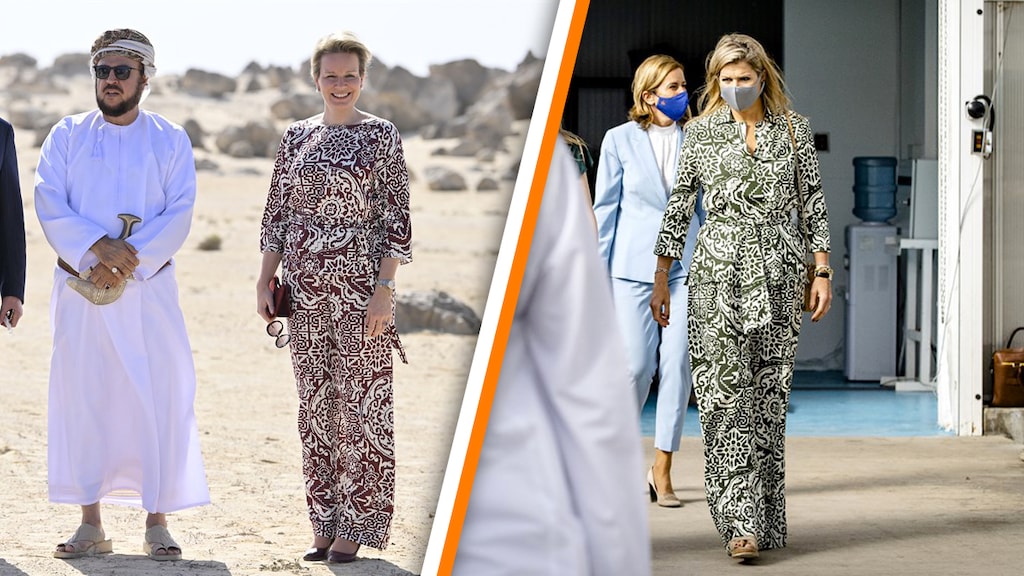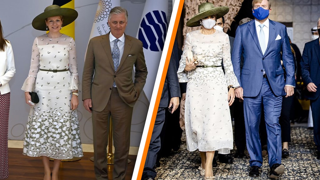 De Belgische koning Filip (61) en koningin Mathilde (49) brachten afgelopen week een bezoek aan Oman en de Verenigde Arabische Emiraten. Er stond onder meer een bezoek aan de World Expo in Dubai op de agenda. Koninklijke gasten zijn ze daar wel gewend; afgelopen november kwamen koning Willem-Alexander (54) en koningin Máxima (50) nog op bezoek. Het is echter wel de vraag of ze in Dubai de royals uit elkaar kunnen houden. Mathilde droeg tijdens het bezoek nagenoeg dezelfde outfits - meervoud - als onze koningin.