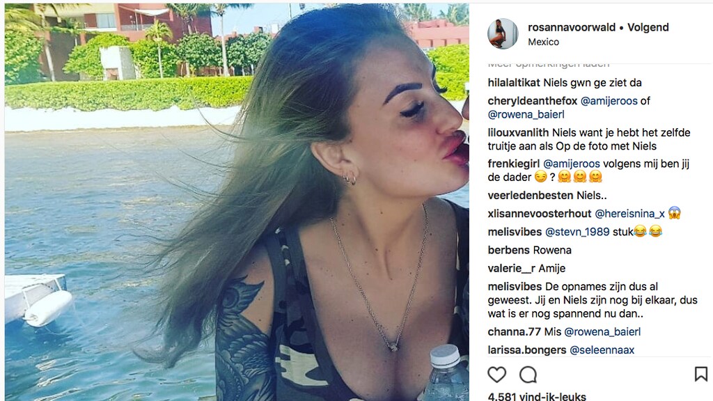 Het gaat er heet aan toe in Mexico! Zo wordt Rosanna, bekend van Temptation Island, zoenend gespot. Maar of het om haar vriend Niels gaat is nog maar de vraag: “Wie kus ik hier op Temptation?”, plaatst de blondine onder de geheimzinnige foto.