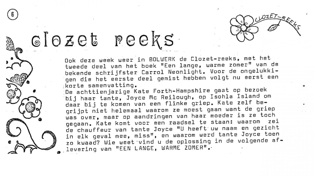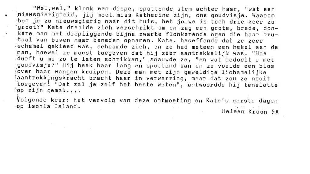De schrijfster had het schrijven al vroeg onder de knie, en ook de erotische inslag zat er blijkbaar altijd al in. Het verhaal hieronder uit haar eigen 'closet reeks' heeft Heleen geschreven in de vijfde klas van de middelbare school.