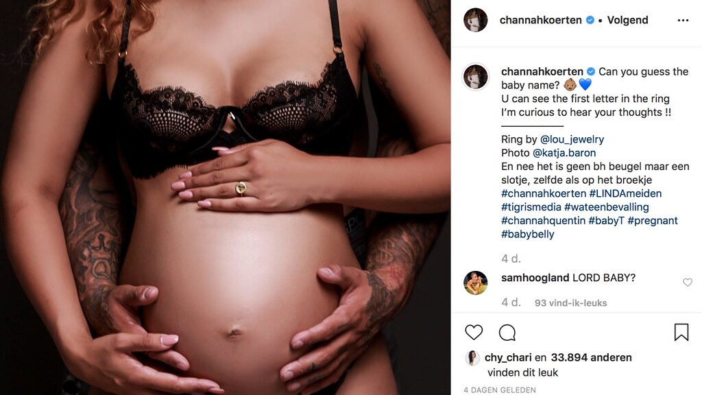 Bovendien kan Channah rekenen op steun van haar Temptation Island VIPS-maatjes. "Wauw", reageert Pommeline onder het kiekje. Ook de ex van de blondine is er voor de krullenbol. Fabrizio liket dan ook de foto van Channah. Het is nog even wachten tot de baby er zal zijn, maar het koppel heeft al onthuld dat het een jongetje is en dat de eerste letter van de naam een T is.