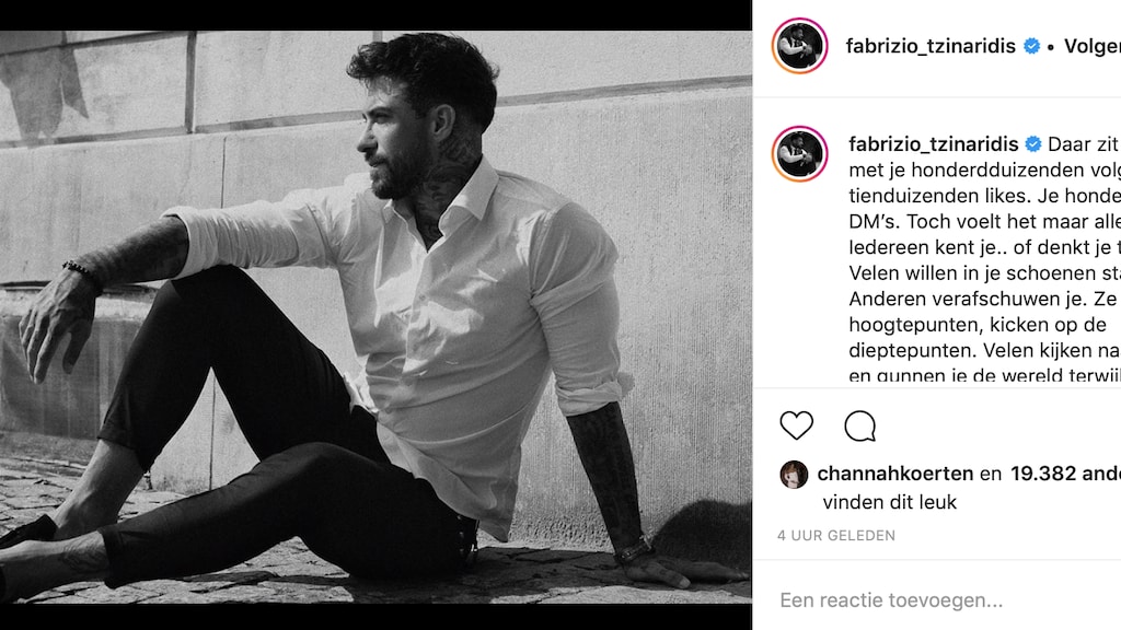 In de post schrijft Fabrizio dat hij zich, ondanks zijn honderdduizenden volgers en tienduizenden likes, eenzamer voelt dan ooit. "Iedereen kent je... of denkt je te kennen. Velen willen in je schoenen staan. Anderen verafschuwen je", plaatst hij. "Velen kijken naar je op en gunnen je de wereld, terwijl anderen niet kunnen wachten op het moment dat je een misstap begaat."