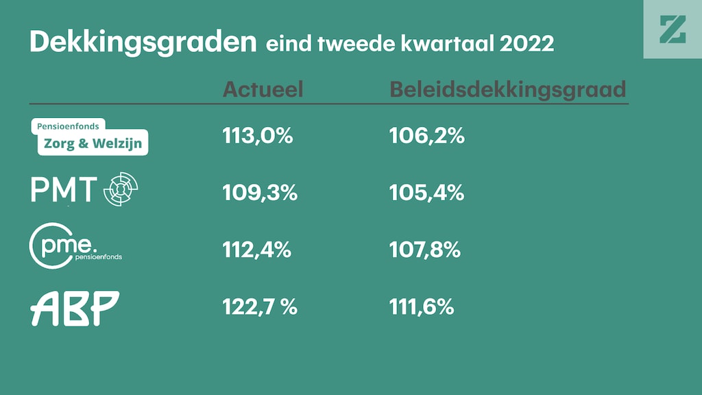 Bij ambtenarenfonds ABP, zorgfonds PFZW en de twee fondsen voor de technische- en metaalindustrie PME en PMT gingen de dekkingsgraden in het tweede kwartaal van dit jaar verder omhoog, melden de fondsen.