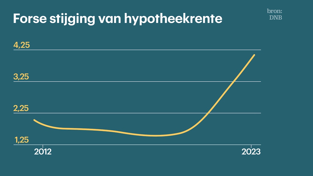 Tegelijk spelen twee andere zaken huizenkopers parten, ook starters. Allereerst is de hypotheekrente behoorlijk gestegen, zoals te zien in de grafiek hierboven. Starters kunnen daardoor, afhankelijk van hun inkomen, tot zo'n 3 procent minder lenen dan voor die stijging, aldus Boelhouwer. En de lasten voor huizenkopers liggen hierdoor een stuk hoger: ze betalen zo'n 15 procent meer om hetzelfde bedrag te mogen lenen.