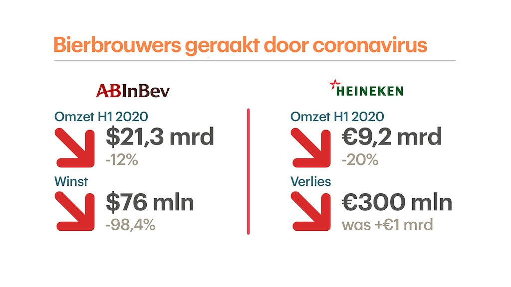Dat we meer corona drinken, wil niet zeggen dat het goed gaat met de verkoop van bier in het algemeen. In de eerste maanden verkocht AB InBev in zijn geheel minder, net als concurrent Heineken. Laatste genoemde kwam zelfs met een winstwaarschuwing. AB InBev maakte nog net winst, terwijl Heineken honderden miljoenen verlies maakte.
