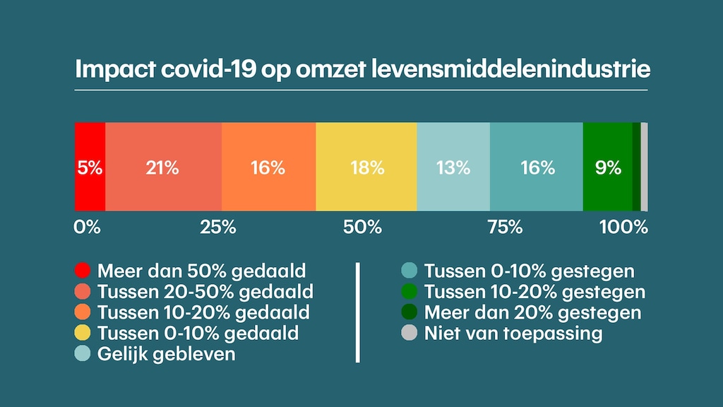 Een groot deel van de Nederlandse voedingsmiddelenbedrijven hebben te maken met forse omzetverliezen door de coronacrisis. Opvallend is dat daar ook ondernemingen bij zitten die aan supermarkten leveren en die draaien dit jaar juist op volle toeren.