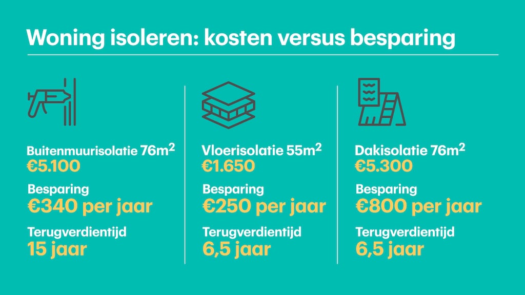 Mintjes: "Muren isoleren is een kostenpost maar levert wel het meeste rendement op." Het geld wat je erin stopt is met vier jaar terugverdiend, zegt zij, en levert meer op dan geld tegen weinig rente op een spaarrekening laten staan.
