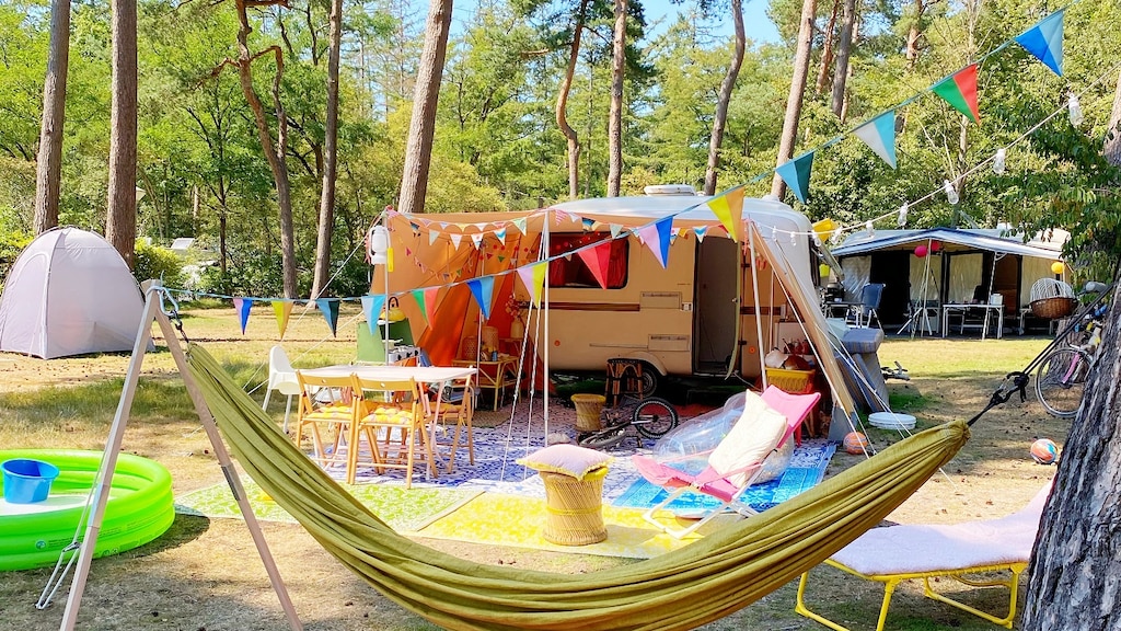 "Eerder kampeerden we in een tentje. Mijn man wilde geen caravan. 'Zo’n sleurhut, dat gaan we niet doen', zei hij. Maar toen ik op een gegeven moment op de camping een mooie Italiaanse Lander-caravan zag staan en op slag verliefd was, zag Patrick er ineens ook de charme van in."