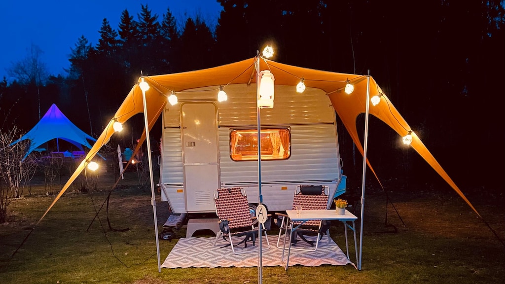 "Die heb ik net geplaatst. De derde caravan ben ik aan het opknappen en die ga ik verhuren. Dan kunnen andere mensen er ook van genieten. Hoe ik aan al die caravans ben gekomen in deze tijd van caravanschaarste? Ja, het is hysterisch en heel erg duur. Het is mij via via gelukt en door heel goed te zoeken. Lang niet alles wat te koop staat is oké, er zijn veel caravans met houtrot en lekkage. Dat kun je wel opknappen, maar dat kost veel tijd en geld."