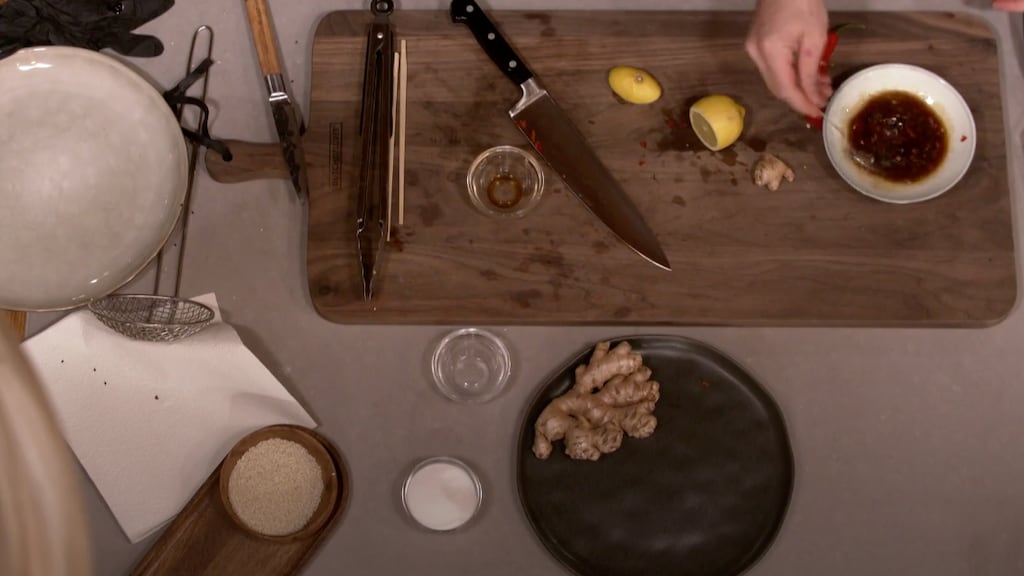 Als de vis aan beide kanten is dichtgeschroeid, haal je 'm uit de pan. Tataki hoeft niet warm geserveerd te worden, dus deze kun je goed voorbereiden.