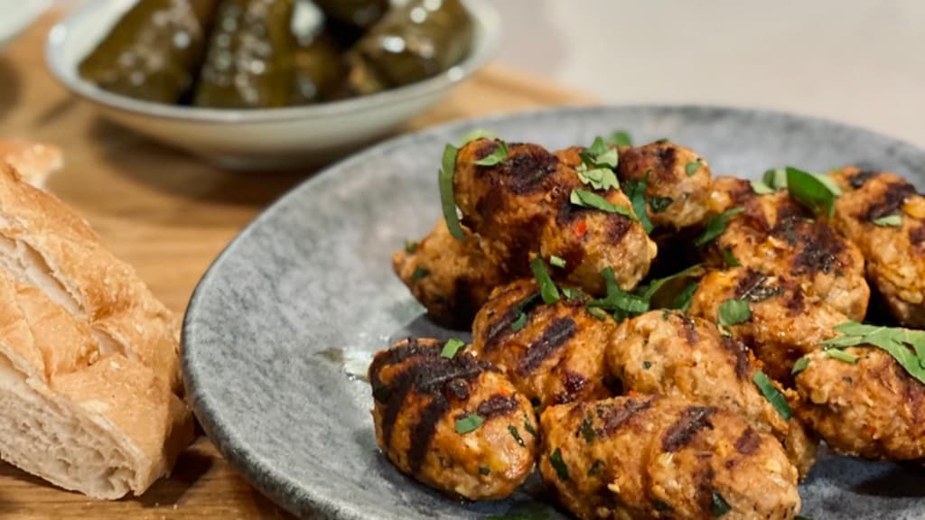 De Turkse keuken staat bekend om zijn kruidige bereidingen en frisse dips. Vandaag op de plank: filorolletjes met feta (sigara böregi), pikante tapenade (acili ezme), gegrilde gehaktballetjes (köfte) en yoghurt-komkommerdip (cacik).