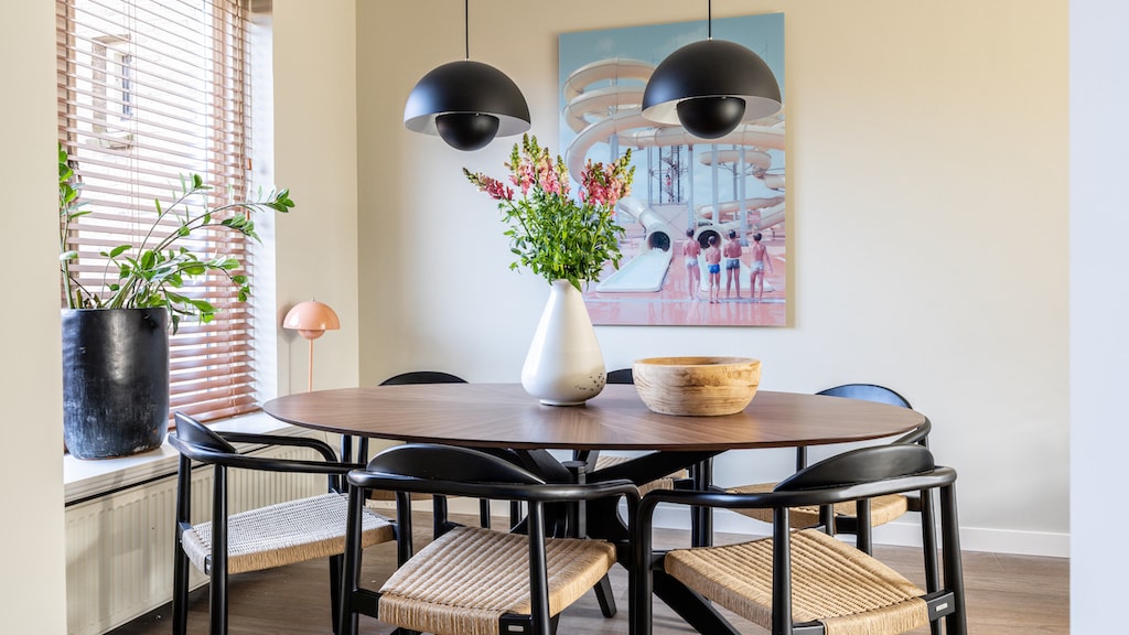 Gelukkig blijkt het in de praktijk mee te vallen. Dyan: “Nu we er wonen blijkt dat we in de zomer, als de zon hoog staat, links achterin de tuin evengoed best wat zon hebben. Daar kunnen we lekker avondeten in het zonnetje. Al met al geen ramp dus, maar het blijft nog steeds het enige punt waar we stiekem best van balen. Gelukkig krijgen we er ook heel veel andere dingen voor terug. Een charmant huis, een fijne nis, een balkon, mooie grote ramen… het totaalpakket klopt alsnog.”