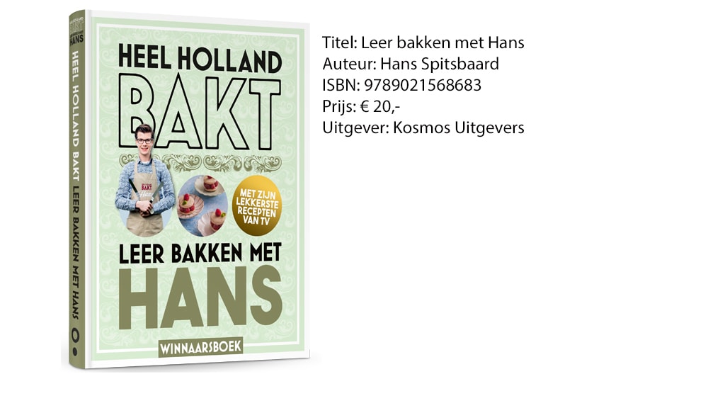 Hij is de jongste thuisbakker ooit die de jubileum editie van het populaire bakprogramma Heel Holland Bakt won: Hans Spitsbaard. De student Technische Bedrijfskunde won het programma door zijn precisie en technische vaardigheden en geeft in zijn bakboek een kijkje in zijn keuken. In Leer bakken met Hans staan zowel de recepten uit de uitzendingen als nieuwe recepten. De stap-voor-stap foto’s en duidelijke uitleg maken het ook toegankelijk voor de minder ervaren thuisbakker.