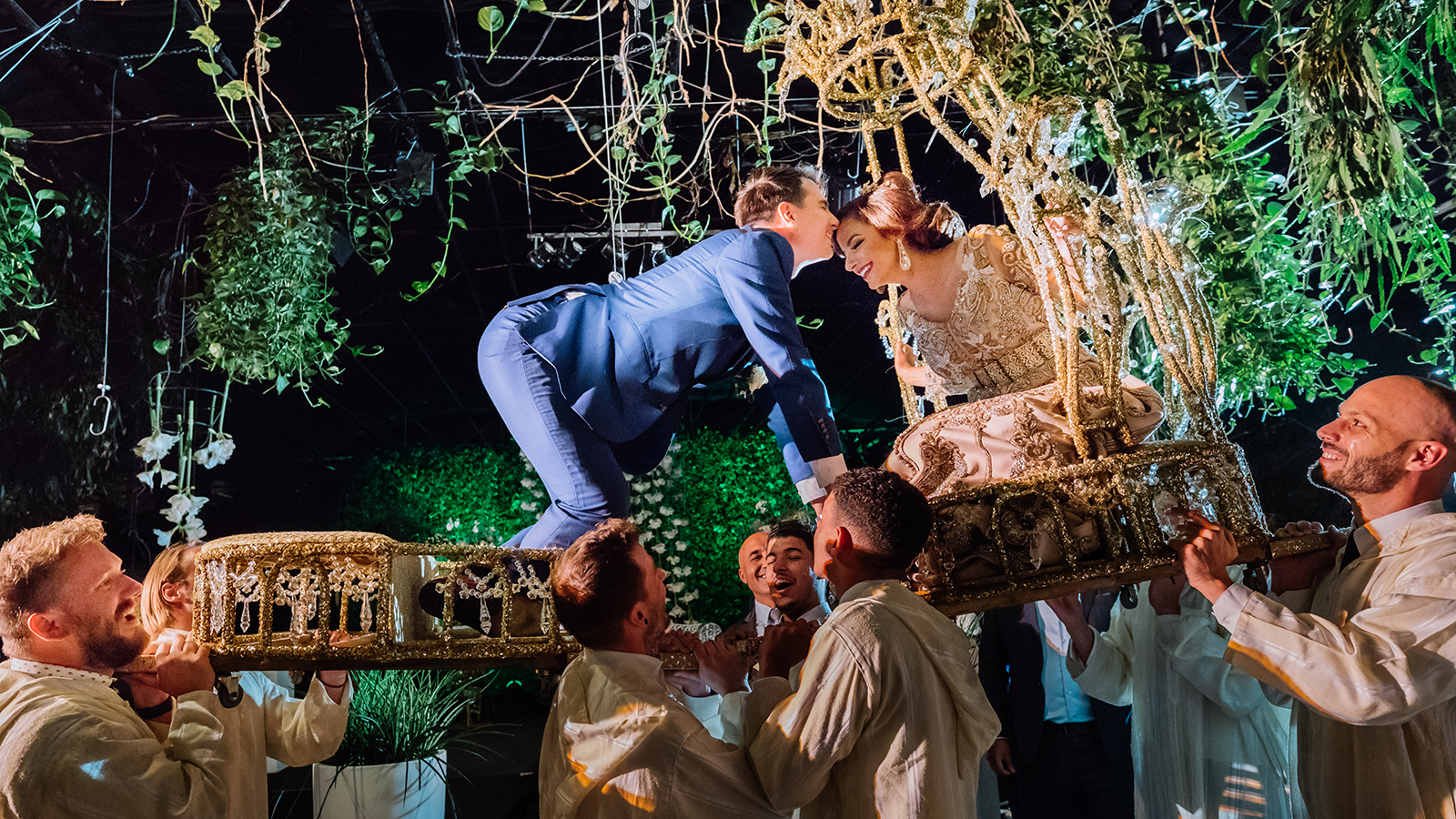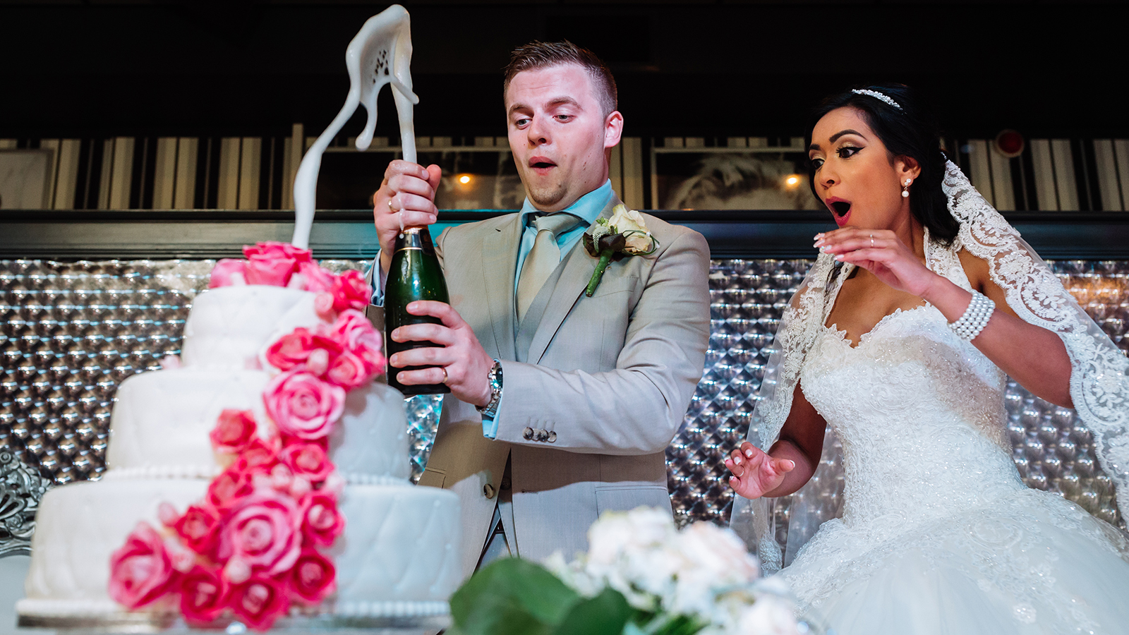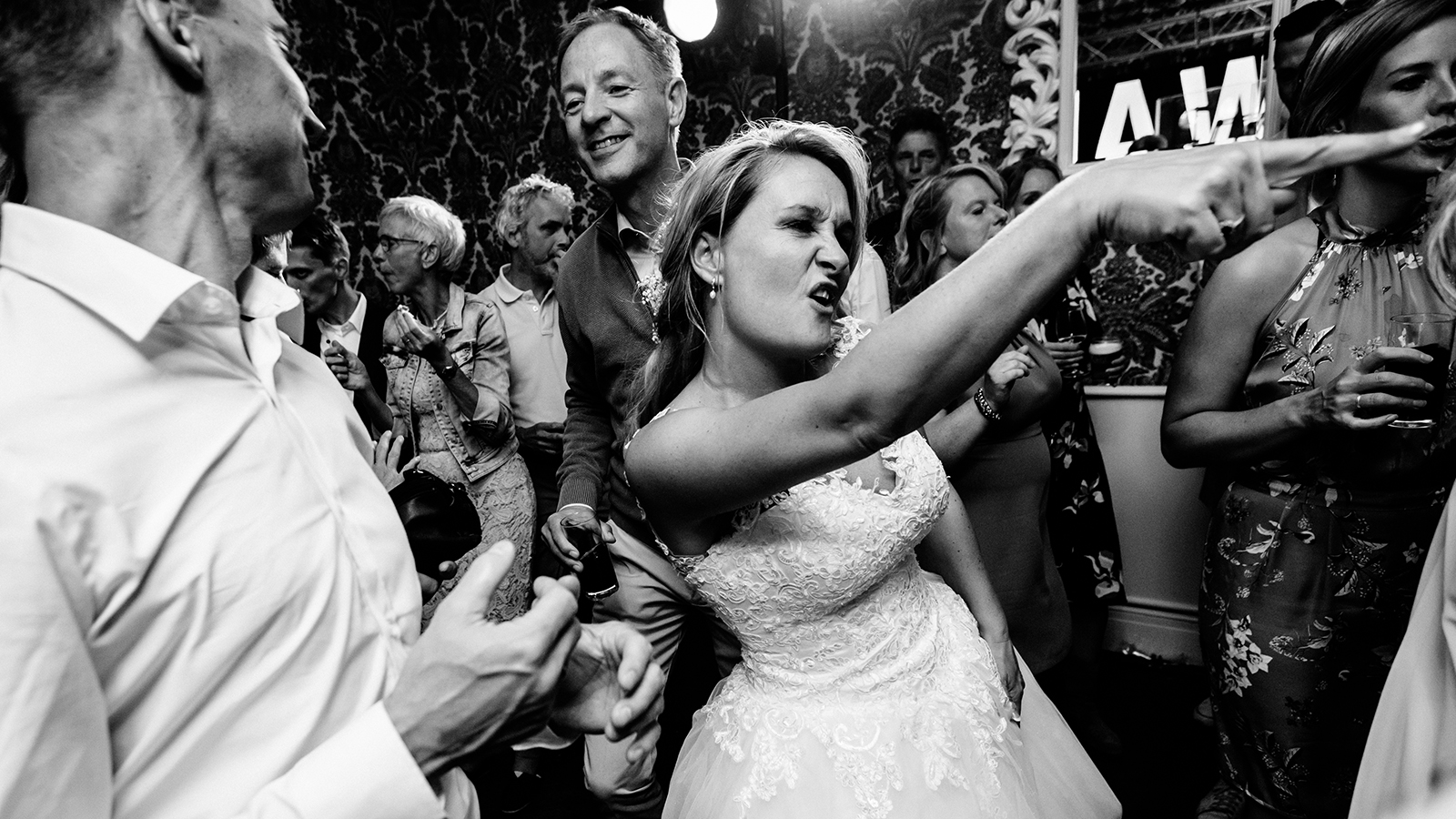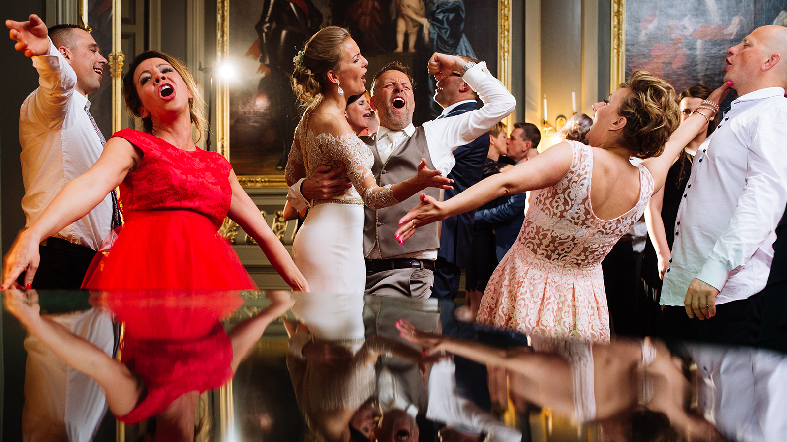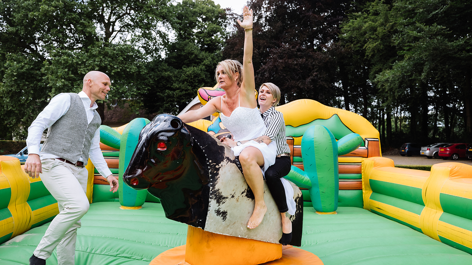 Zijn meest indrukwekkende bruiloft was toch wel die van Gerrit en Monique, een paar jaar geleden. Niks multicultureels, maar allesbehalve doorsnee. "Filmpjes daarvan gingen helemaal viral. Ze hadden allemaal toffe dingen, zoals zo'n rodeostierapparaat, een voetbalhoek en een salsaworkshop voor de vrouwen. Aan het einde van de dag hadden ze een enorme lasershow met hardstylemuziek en vlammenwerpers. Dat was heel spectaculair. Voor mij geldt: hoe gekker hoe beter." Een aantal van de hoogtepunten van die bruiloft zie je hieronder.