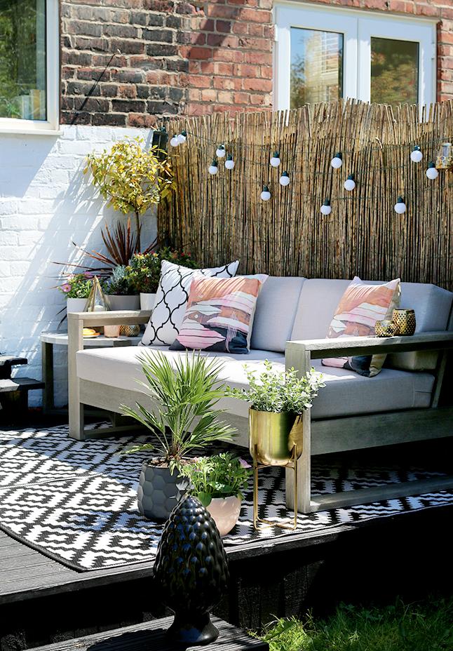 Inspiratie: leg eens een knus vloerkleedje in je tuin