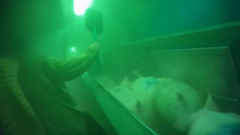 - Personeel slachthuis gaat helemaal los met stokken en stroomapparaat op varkens en koeien