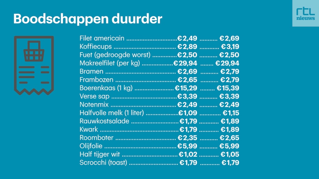 Eens in de zoveel tijd vergelijkt de Consumentenbond de prijzen van supermarkten. Dat vergelijkend warenonderzoek laat nog even op zich wachten. Consumenten zullen zelf moeten zoeken naar de beste prijzen en aanbiedingen. Het boodschappenlijstje hierboven is een zelfgemaakte prijsvergelijking van de grootste supermarktketen van Nederland tussen een halfjaar geleden en nu. Nagenoeg alle prijzen zijn gestegen, er is bijna geen ontkomen aan.