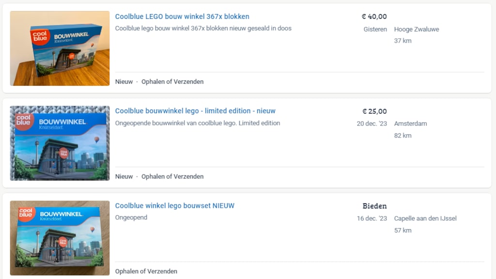 En waar CoolBlue-medewerkers vorig jaar nog zelf een bestelbus konden bouwen, kunnen ze dit jaar aan de slag met een legoversie van een CoolBlue-winkel. Dat zal alleen niet door alle personeelsleden in elkaar gezet gaan worden, want de bouwwinkels staan meermaals te koop.