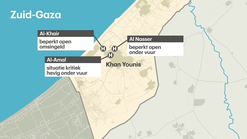 De gezondheidszorg in Gaza ligt continu onder vuur. Welke ziekenhuizen in Gaza kunnen nog patiënten behandelen, welke worden op dit moment beschoten, of hebben de deuren al moeten sluiten? RTL Nieuws brengt een aantal ziekenhuizen in kaart.