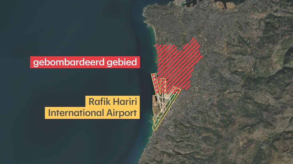 Dat vertelt verslaggever Pepijn Nagtzaam vanuit Beiroet. Het land verlaten kan over zee of via de lucht, legt hij uit: "Het land ligt ingeklemd tussen Syrië en Israël. Door Syrië kun je natuurlijk niet zomaar veilig reizen. En de grens met Israël is altijd dicht, ook in vredestijd. Er gaan boten naar Cyprus of Turkije, maar dat is echt heel ingewikkeld. Dat betekent dat de enige normale uitgang het vliegveld is in Beiroet. En daar zit het probleem nu: de zuidelijke buitenwijk van Beiroet die nu gebombardeerd wordt, ligt letterlijk naast de luchthaven."