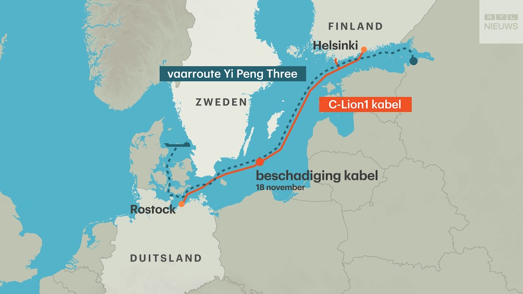 Het vrachtschip de Yi Peng 3 vertrok op 15 november uit een haven in Rusland. De kapitein zou een Rus zijn. Het schip voer constant boven een grote communicatiekabel tussen Finland en Duitsland, de C-Lion1 kabel.