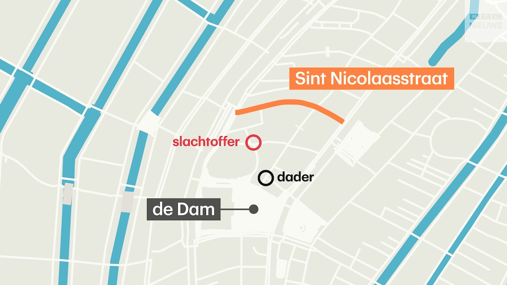 Een ooggetuige uit de Nieuwezijds Voorburgwal, dat ligt vlakbij de Sint Nicolaasstraat, zegt tegen RTL Nieuws dat hij aan het bellen was op een bankje toen hij iemand de steeg uit zag rennen. "Het was een jongen met kort, zwart, gemillimeterd haar. Hij rende weg in de richting van de Dam en liet een meisje achter. Toen ik vroeg of zij oké was, zag ik een mes in haar rug, tussen haar schouderbladen."