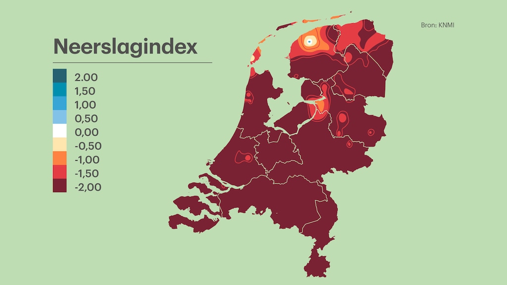 Hij legt uit: Het KNMI monitort de droogte in het zogenaamde droogteseizoen, vanaf 1 april tot 30 september, waar normaal gesproken minder neerslag valt dan in andere periodes van het jaar. Als er te weinig regen valt ten opzichte van wat er verdampt in deze periode, dan kunnen we zeggen dat er sprake is van droogte.