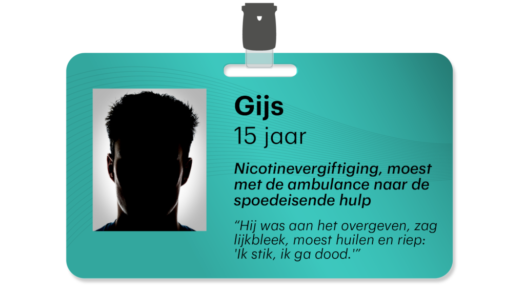 "Het voelde alsof er iemand op me stond", "ik hoestte opeens veel bloed op" en "ik kon niet eens meer naar de wc lopen, dan was ik al buiten adem." Het zijn de zinnen van jongeren die elkaar niet kennen, maar één ding gemeen hebben. Ze lagen opeens in het ziekenhuis omdat ze ziek werden na vapen. Deze jongeren, en enkele ouders, doen nu voor het eerst hun verhaal.