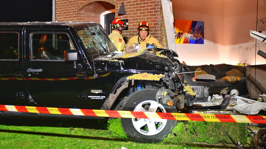 Jeep ramt gevel woning in Budel, bewoners ongedeerd