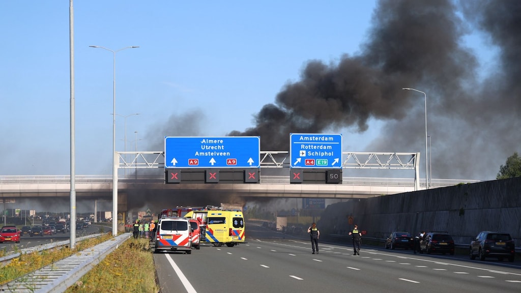 Het ongeluk heeft grote impact op het verkeer. Rijkswaterstaat meldt dat de A9 bij knooppunt Badhoevedorp in beide richtingen is afgesloten. "De andere richting is vanwege rookontwikkeling tijdelijk dicht gezet. Ik durf nog niet te zeggen hoelang dit gaat duren", schrijft de dienst op X.