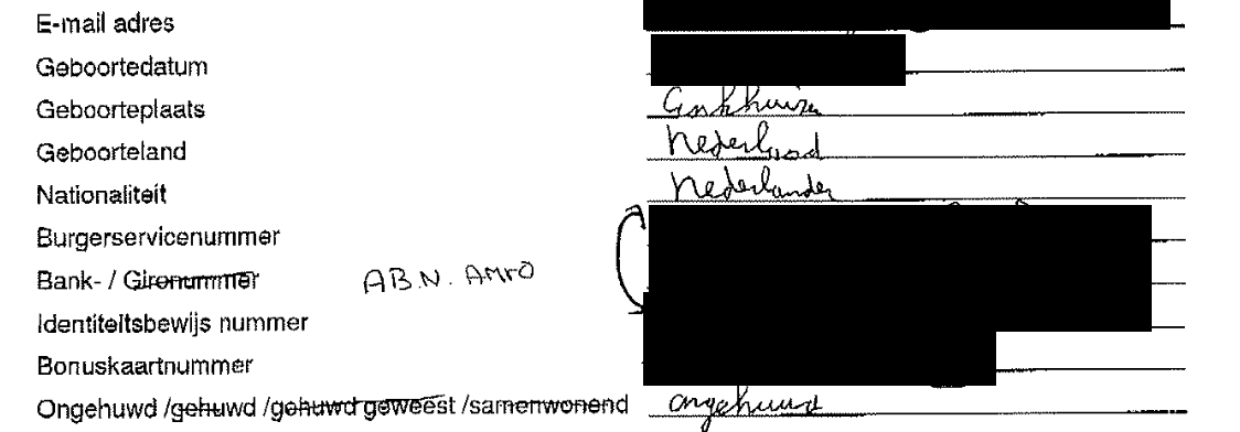 Paspoortkopieën en bankrekeningnummers