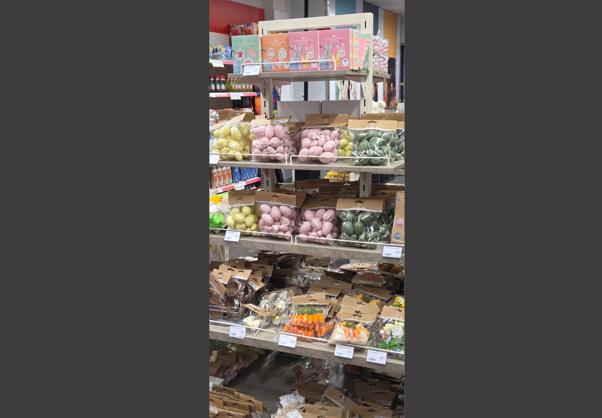 Het is kerst, maar bij Wibra liggen de schappen al vol met paasartikelen