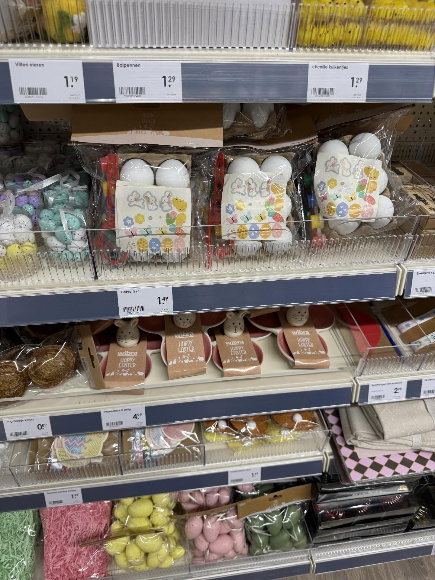 Vilten eieren voor in de paastak, een schildersetje om de eieren een kleurtje te geven en paaskransen voor aan de deur. Mensen die de afgelopen dagen in de Wibra zijn geweest, moesten misschien even twee keer knipperen met hun ogen. Want waar zij mogelijk op zoek waren naar de laatste kerstversieringen, troffen ze paasdecoraties aan.
