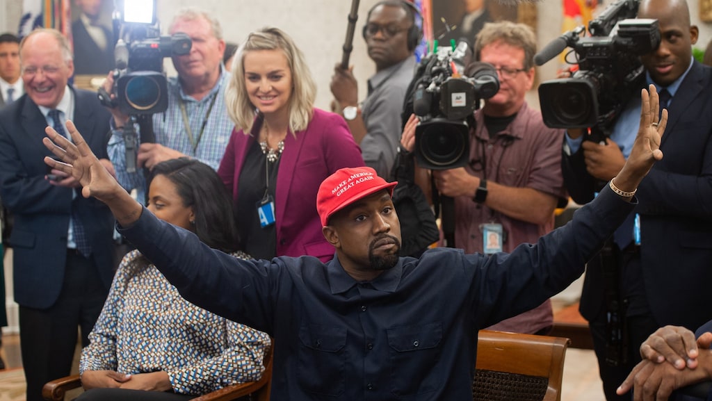 Vrienden verklaren hem soms voor gek omdat hij het draagt, zei Kanye. "Maar ik krijg er energie van. Mijn ouders waren gescheiden, dus zelf heb ik vroeger thuis te weinig mannelijke energie gekregen." En tegen Trump: "Je hebt me Superman gemaakt. Mijn favoriete superheld. Je hebt een Superman-cape voor me gemaakt."