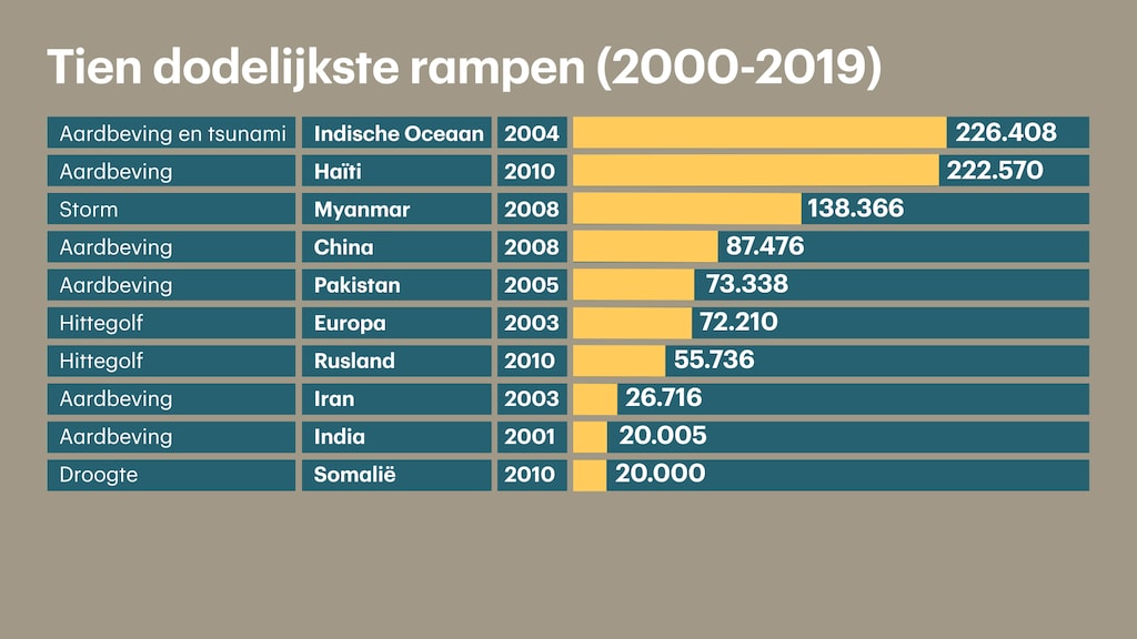 Tien dodelijkste rampen van de afgelopen 20 jaar