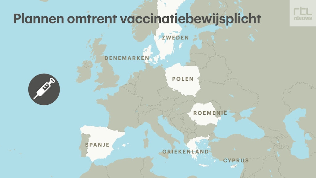 Zweden en Denemarken zijn niet de enige landen die wel iets zien in een vaccinatiepaspoort. Op de kaart hieronder staan de Eruopese landen aangegeven die soortgelijke plannen hebben of die plannen willen maken.