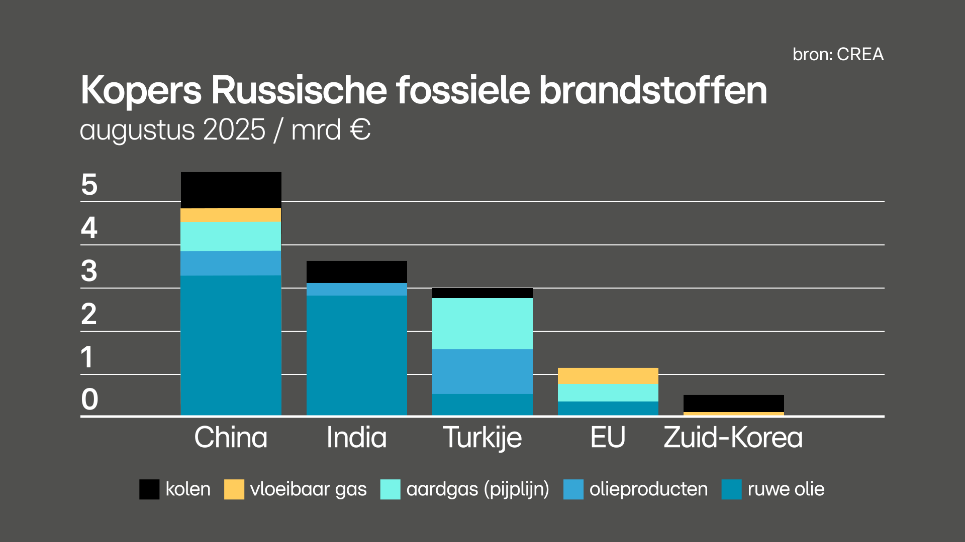 Hoewel de Europese import na de inval van Rusland in Oekraïne in 2022 flink is afgenomen, verdient Rusland nog steeds miljarden aan de export. Volgens een rapport van het Centre for Research on Energy and Clean Air (CREA) exporteerde Rusland in augustus 2025 voor gemiddeld 564 miljoen euro per dag aan fossiele brandstoffen. Dat bedrag kwam dus niet alleen voort uit leveringen aan Europa, maar ook aan andere landen.