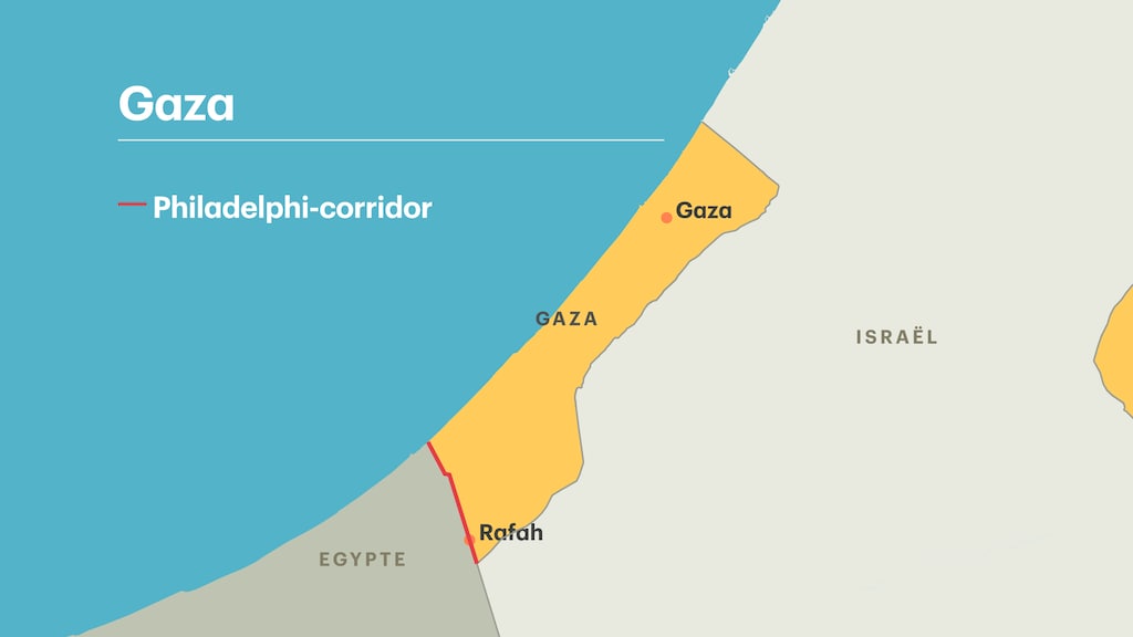 Direct achter de grensovergang ligt de Philadelphi-corridor, een smalle strook land van ongeveer 100 meter breed langs de grens met Egypte. Het is nog onduidelijk wat daarmee gebeurt. "Israël gebruikt die als bufferzone. Zowel Egypte als de Palestijnen willen dat Israël zich daar weer terugtrekt, maar Israël wil de corridor houden. Daarover wordt nog onderhandeld", zegt Malcontent. Het twintigpuntenplan van Trump biedt daarbij geen houvast: de Philadelphi-corridor wordt daarin niet genoemd.