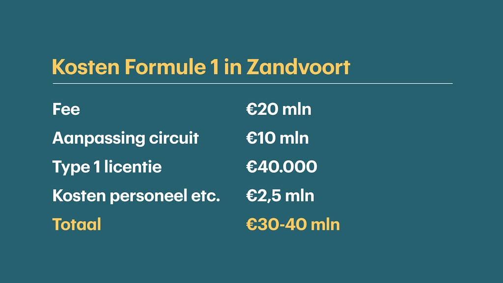 Voor er ook maar een Ferrari, Mercedes of Red Bull-auto over het circuit kan gaan, is er een bedrag van tegen de 40 miljoen euro nodig, blijkt uit een haalbaarheidsstudie naar het organiseren van F1-races in Zandvoort. We hebben alle kosten en inkomsten op een rij gezet.