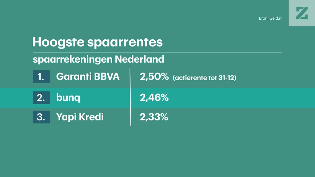 Dat doen ze mede, omdat ze na alle problemen in de bankenwereld voorzichtiger zijn geworden, aldus Bulthuis. Toch valt er voor consumenten best wat te kiezen, zegt ze. Zo krijg je bij kleinere Nederlandse banken, zoals Bunq, vaak wel een hogere rente.