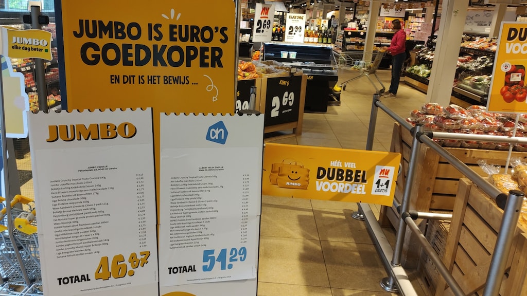 "Euro's goedkoper en dit is het bewijs", schreeuwde Jumbo onlangs nog van de daken, waarbij het een eigen kassabon vergeleek met die van marktleider Albert Heijn. Maar wij zijn nóg goedkoper, counterden regionale speler Vomar en discounter Dirk de claim van Jumbo al snel.