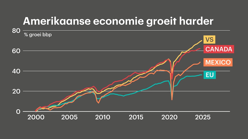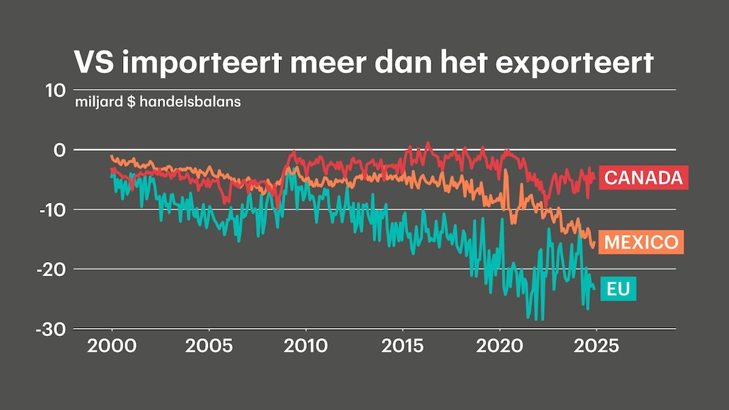 De reden dat Trump importheffingen oplegt aan andere landen zijn de handelstekorten die de VS hebben, aldus Veenstra. "Dat is kennelijk een probleem in het hoofd van Trump, maar de Amerikaanse economie groeit als een dolle."