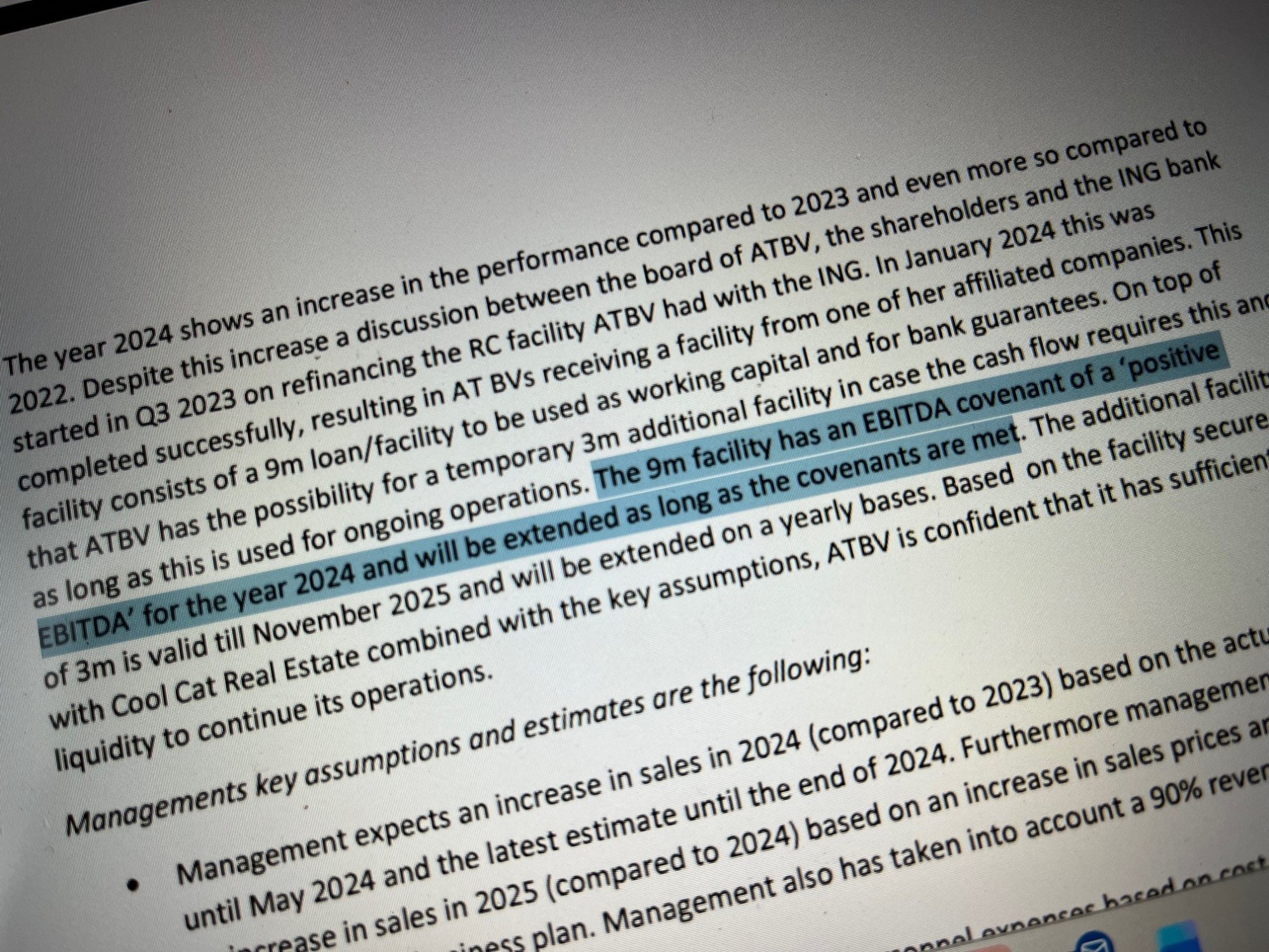 Nu blijkt uit de kleine lettertjes in de jaarrekening over 2023 dat die miljoenenlening verlengd zou worden, onder voorwaarde dat America Today in 2024 een positief bruto bedrijfsresultaat (ebitda) zou boeken. Vorig jaar kwam het resultaat echter uit op een verlies van 1,1 miljoen euro.