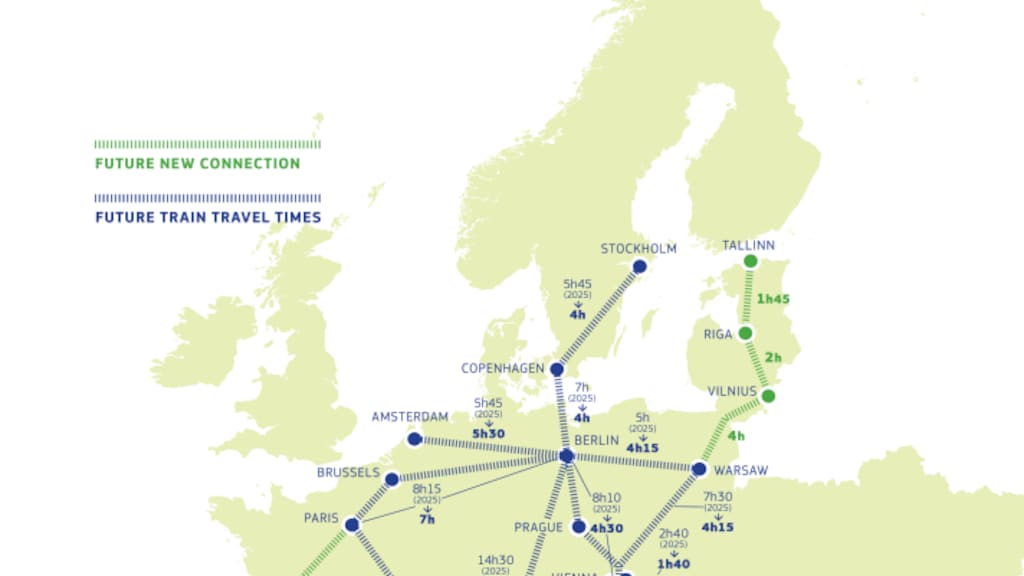 Ook moet de trein 'Europeanen verenigen en onze economie versterken'. De EC heeft daarom een aantal concrete reistijden op bepaalde reizen geplakt. Naast de hierboven genoemde reizen, moeten treinen in de hele Europese Unie sneller gaan rijden.