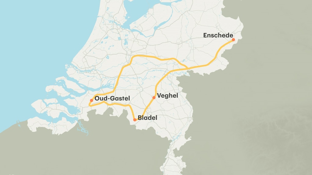Ze gaat van Enschede naar haar schoonfamilie in Veghel, dan slaapt ze in Bladel en rijdt ze door naar Oud Gastel in West-Brabant om vervolgens weer naar Enschede te gaan. Een tocht van ruim 500 kilometer.