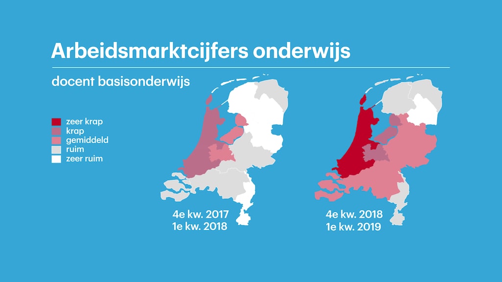 De Amsterdamse schooldirecteur is niet de enige die moeite heeft met het vinden van personeel, blijkt uit cijfers van het UWV. In het tweede kwartaal van dit jaar waren er 2400 open vacatures in het basisonderwijs, en nog eens 3100 in het voortgezet onderwijs. Nooit eerder werden er zo veel leraren gezocht.
