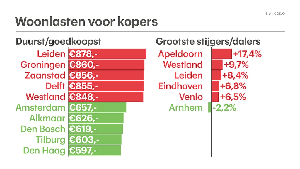 De woonlasten verschillen sterk per gemeente. Zo gaan huiseigenaren in Apeldoorn 17 procent meer dan vorig jaar betalen en huurders zelfs 29 procent, terwijl de woonlasten in Arnhem juist zullen dalen.