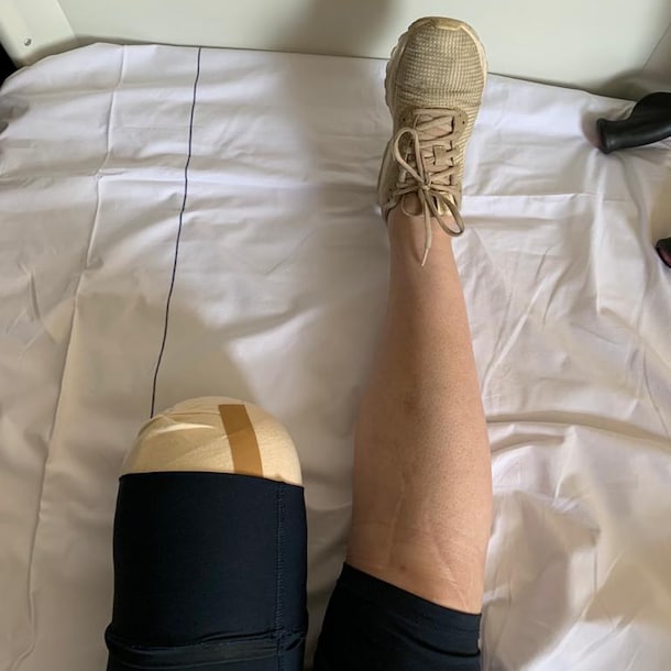 Toen dat laatste ook niet gebeurde, was er nog één oplossing: een stuk tussen het kuitbeen halen waardoor de spanning en de pijn zou verdwijnen. Weer een nieuwe operatie, maar eindelijk één met een goede afloop. "Geen pijn meer, eindelijk."