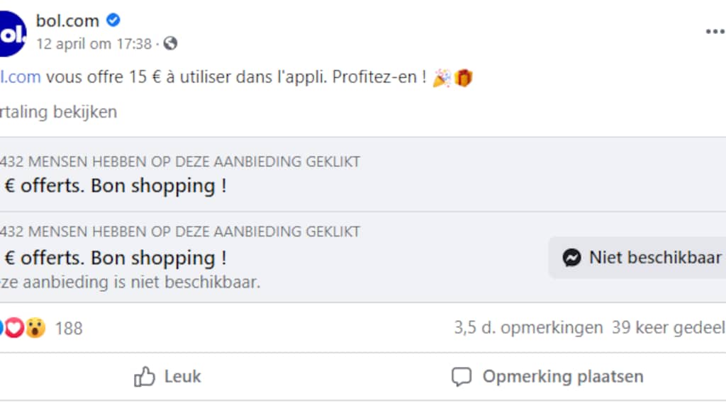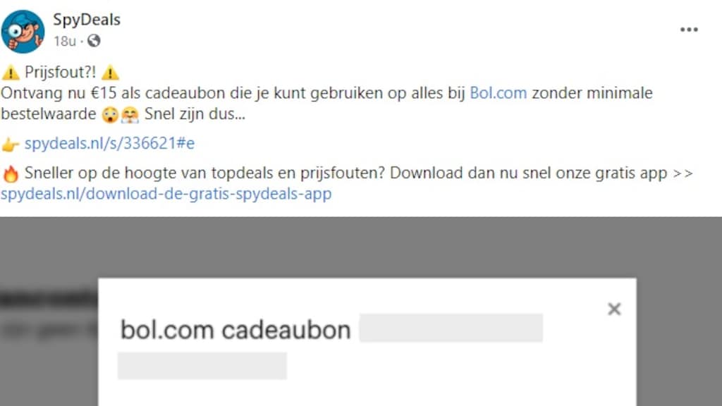 De Zutphense Deborah wist niet wat ze gisteravond zag toen ze achter haar laptop zat. Een voucher ter waarde van 15 euro van Bol.com kwam voorbij op Facebook. "Ik dacht eerst: dit is een nepadvertentie", zegt ze. "Maar een kennisje van mij had de advertentie ook aangeklikt en tipte me dat het echt een voucher was van Bol.com. Geen spam dus."