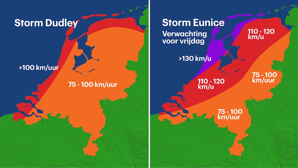 Storm Dudley is nauwelijks het land uit, of Eunice dient zich aan. Die gaat naar verwachting tot veel schade en gevaarlijke situaties zorgen. Het KNMI heeft om die reden code oranje afgegeven.