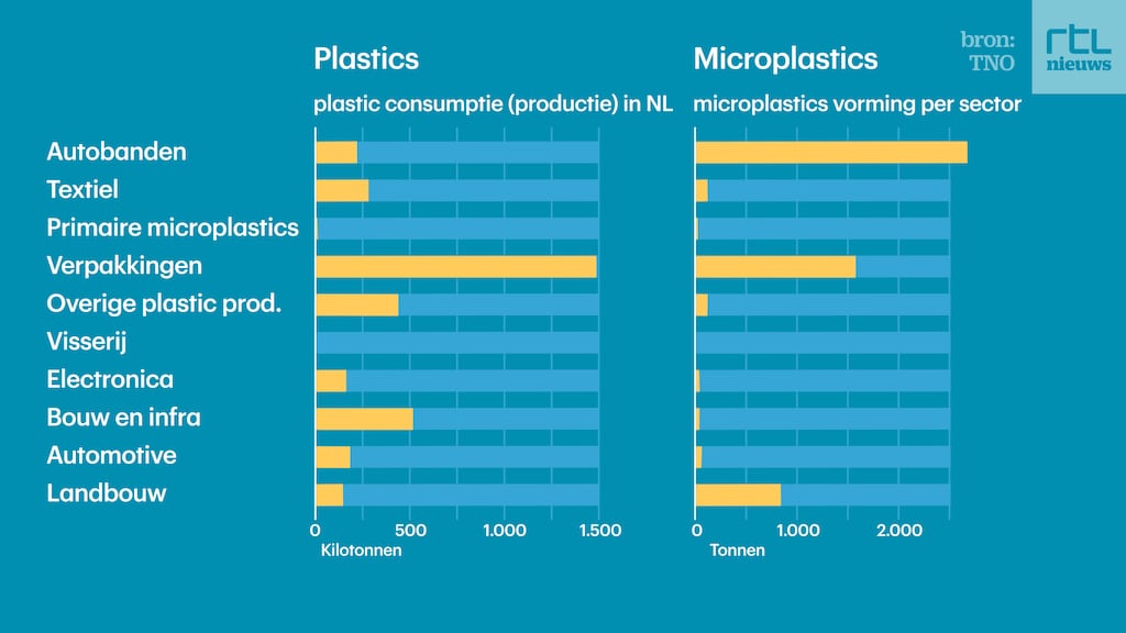 Autobanden en landbouwplastic behoren tot de grootste bronnen van microplastics die in het milieu terechtkomen. Dat blijkt uit onderzoek van TNO.